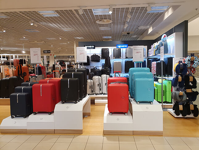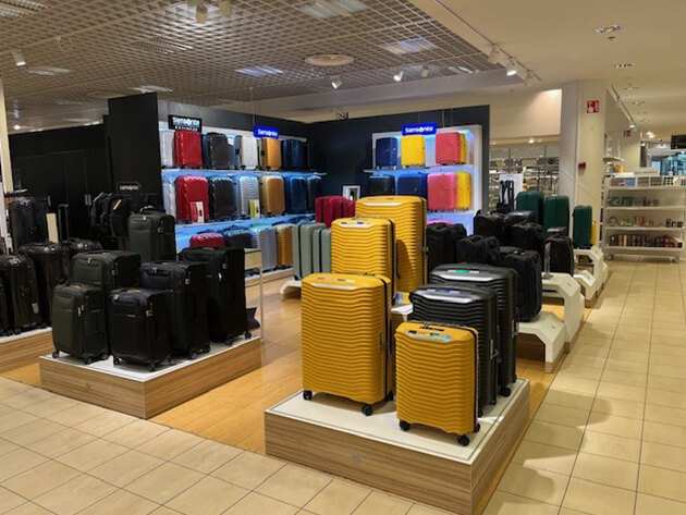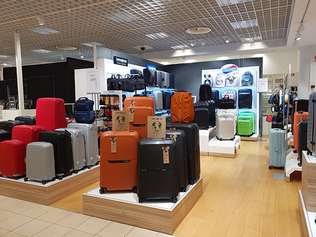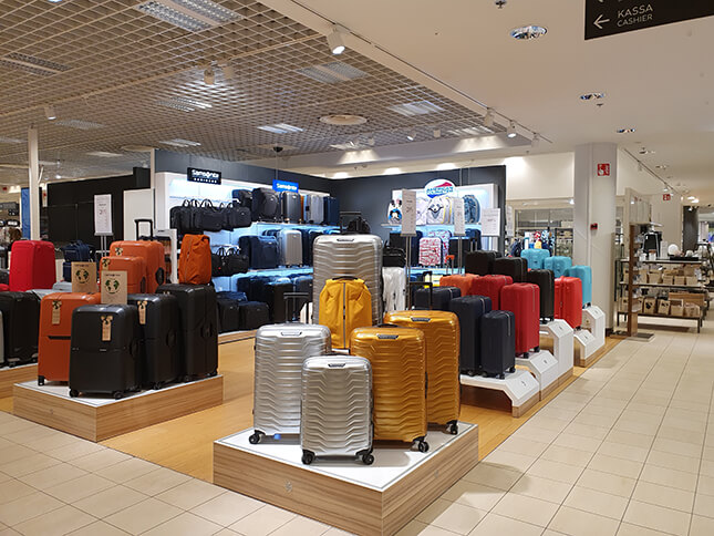 Esittelyssä Samsonite myymälä, Stockmann Jumbo tavaratalossa! Myymälässämme on esillä laaja valikoima Samsoniten, American Touristerin tuotteita. Matkalaukkujen lisäksi valikoimaan kuuluu laaja valikoima reppuja ja businessmalliston laukkuja. Henkilökunta auttaa mielellään löytämään juuri Teidän tarpeisiin sopivan laukun. Palvelemme laukkujen huoltoon, lentovaurioihin ja reklamaatiohin liittyvissä asioissa osoitteessa: store.stockmann.helsinki@samsonite.com tai soittamalla (+358) 040-680 2715.